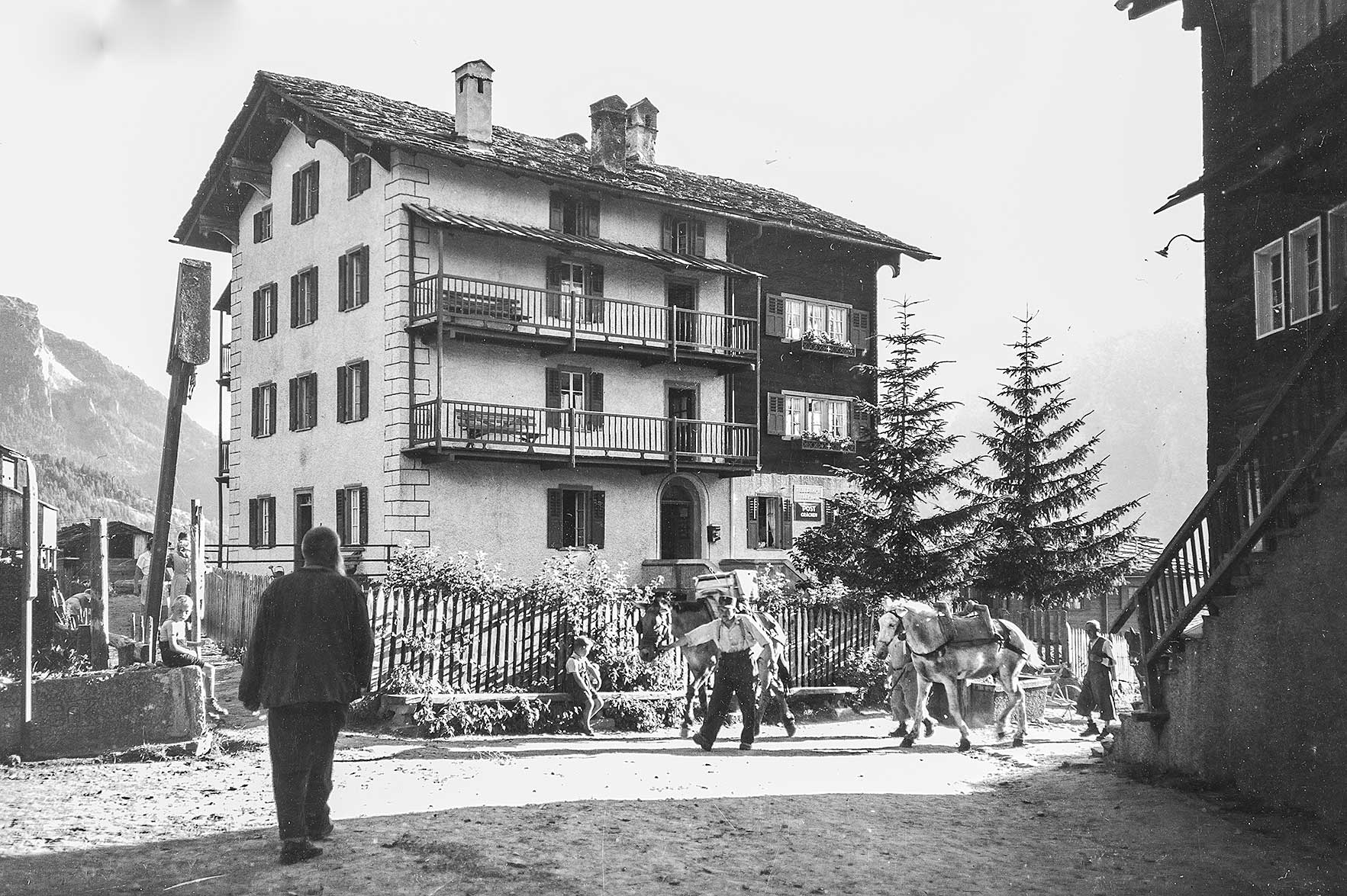 Im Jahr 1859 erhielt Grächen die erste Postablage. Sie befand sich im Weiler Halbsucht in der Wohnstube des damaligen Gemeindepräsidenten Peter Josef Walter. Auf ihn folgte sein Sohn Moritz. Nach dessen Tod im Jahr 1913, übernahm der amtierende Gemeindepräsident Adolf Andenmatten den Postdienst. Drei Jahre später erbaute er dieses bemerkenswerte Gebäude («D Alt Poscht»), teils in Stein, teils als Blockbau. In der ersten Etage richtete Andenmatten das erste öffentliche Postbüro ein. Auf ihn folgten sein Sohn Albert und später sein Enkel Otto als Posthalter von Grächen.